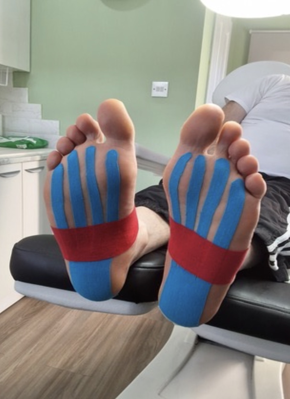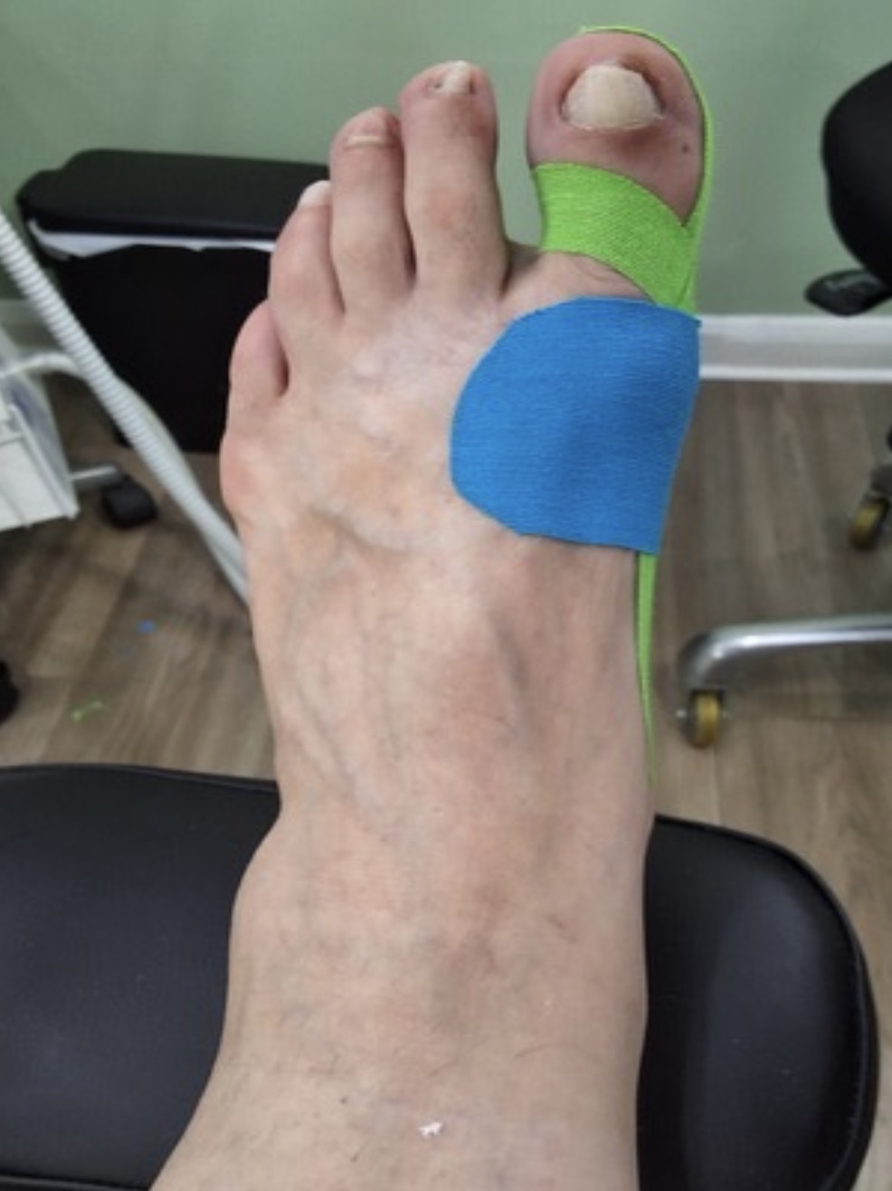 In podiatry, kinesiotaping is used to relieve discomfort caused by heel spurs, bunions, hallux valgus, hammer toes and claw toes, ingrown toenails and as support in stimulating nail growth after mechanical injuries.